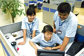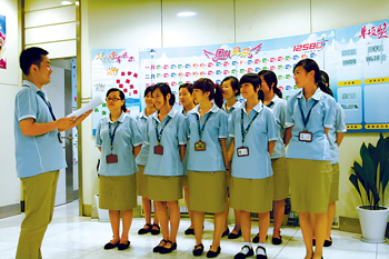 “玉不琢,不成器!彪m說目前社會(huì)的就業(yè)壓力源自于復(fù)雜的社會(huì)原因,可是在客服中心人力資源室的陳依群主管看來,有些還在于80后年輕人的自身原因。“這些年我做招聘工作以來,看到了一些年輕人抱著希望進(jìn)來以后,因?yàn)槭懿涣藟毫τ滞顺隽。在就業(yè)壓力巨大的情況下,多是獨(dú)生子女的80后一代,還沒有完全樹立起正確的就業(yè)觀和務(wù)實(shí)的工作態(tài)度。我們的原則是,凡是進(jìn)入我們公司的員工和見習(xí)學(xué)生,都要經(jīng)歷嚴(yán)格的培訓(xùn),接受規(guī)范的管理,接受我們公司企業(yè)文化的熏陶。通過見習(xí),我們也發(fā)現(xiàn)了很多真正會(huì)發(fā)光的優(yōu)秀人才!
