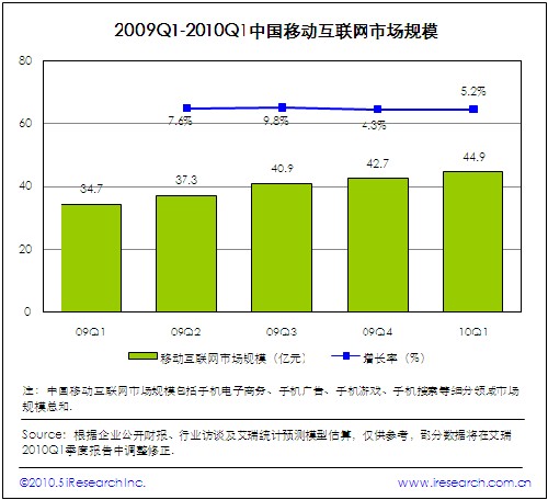 2010第一季度中國移動互聯(lián)網市場規(guī)模穩(wěn)步增長