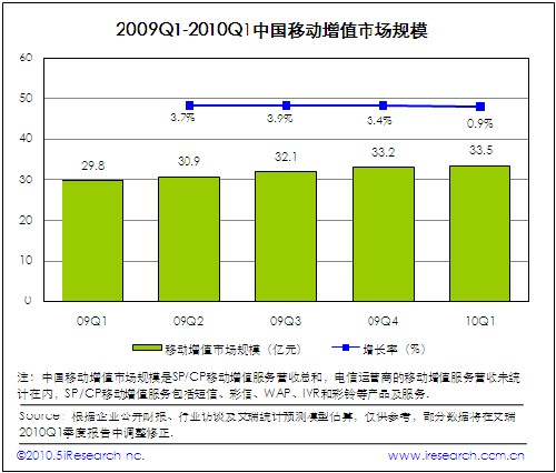 電信運營商計費政策重大調整對整個移動增值市場產生巨大影響力,2010Q1移動增值市場規(guī)模為33.5億,與09Q1基本持平。電信運營商實施計費通道的強力治理措施,對產品線以WAP計費為主的企業(yè)造成嚴重生存壓力,與此同時采用短信計費的移動增值產品營銷也受到不同程度影響。實現(xiàn)由單一移動增值業(yè)務向移動互聯(lián)網服務進行戰(zhàn)略轉型,是SP企業(yè)戰(zhàn)略發(fā)展的實踐路徑。艾瑞認為電信運營商實施全新的合作伙伴計費政策,將重新構建移動增值市場秩序。