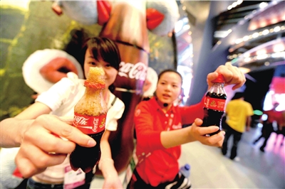 昨天世博園里溫度很高,記者逛得口干舌燥,抬頭看到一個(gè)高達(dá)15米的巨型LED可口可樂瓶,這是“快樂工坊”的招牌。