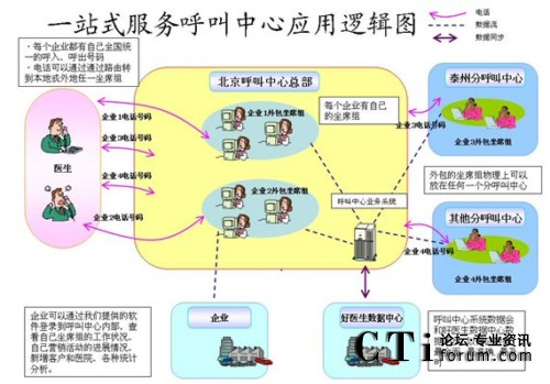 - 依托完善的呼叫中心技術(shù)平臺,好醫(yī)生在國內(nèi)唯一的國家級醫(yī)藥產(chǎn)業(yè)基地——泰州“中國醫(yī)藥城”構(gòu)建完成了國內(nèi)首家具有100座席以上處理能力的醫(yī)藥衛(wèi)生領(lǐng)域的專業(yè)化呼叫中心。該呼叫中心企業(yè)具有多址分布、全國組網(wǎng)功能。座席組物理上既可以在北京(好醫(yī)生的呼叫中心總部),也可以在北京以外的任何地區(qū)(好醫(yī)生的呼叫中心分部);通過IP技術(shù),呼叫中心的各路話務(wù)統(tǒng)一由北京接入或呼出。