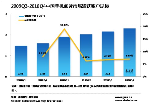 2010年第4季度中國手機(jī)閱讀用戶達(dá)2.33億
