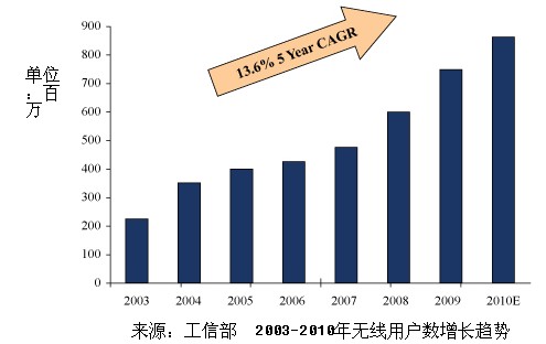 中國(guó)的移動(dòng)增值服務(wù)和移動(dòng)支付解決方案的發(fā)展與手機(jī)行業(yè)的增長(zhǎng)密切相關(guān)。根據(jù)工信部的調(diào)查,截止2009年年底,有7.47億人擁有手機(jī),其中2.33億的用戶曾至少使用一次手機(jī)瀏覽。工信部2010年4月發(fā)布的一份數(shù)據(jù)顯示,中國(guó)的無(wú)線用戶數(shù)在2010年底預(yù)計(jì)將達(dá)到8.64億,復(fù)合年均增長(zhǎng)率達(dá)14%,國(guó)內(nèi)電信行業(yè)的總營(yíng)收在2010年將增長(zhǎng)到4250億元。中國(guó)手機(jī)產(chǎn)業(yè)快速發(fā)展的趨勢(shì)主要是中產(chǎn)階層的推動(dòng)以及3G的發(fā)展。此外,艾瑞預(yù)測(cè),手機(jī)瀏覽器的的用戶數(shù)可能增長(zhǎng)125%達(dá)到2012年的5.24億。