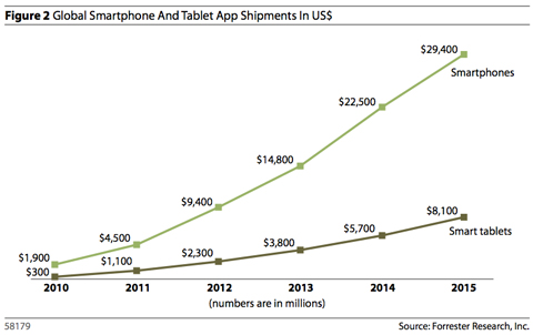 北京時間3月1日消息,據(jù)國外媒體報道,市場研究公司Forrester當?shù)貢r間周一發(fā)表報告稱,到2015年,移動應用市場規(guī)模將達到380億美元。