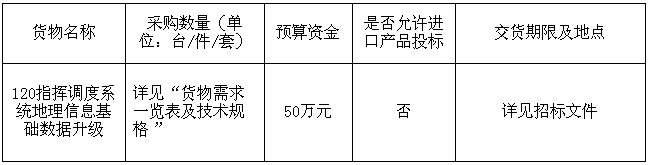 項(xiàng)目名稱:120指揮調(diào)度系統(tǒng)地理信息基礎(chǔ)數(shù)據(jù)升級(jí)采購項(xiàng)目