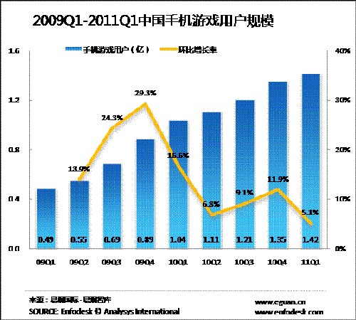 2011年第1季度手機游戲市場規(guī)模達9.04億元