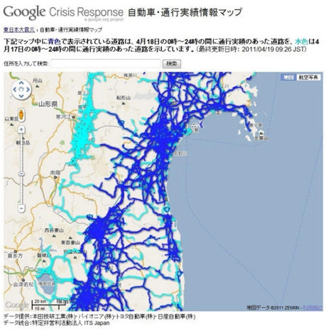 “探針”是汽車物聯(lián)網(wǎng)的重要技術(shù)之一,此前本田已經(jīng)提供了稱為“網(wǎng)上導航”的獨自服務(wù)。日本ITS協(xié)會希望推動探針技術(shù)的通用化,但是廠商之間存在競爭關(guān)系,難以協(xié)同一致。本次,在通行圖上,本田、先鋒、豐田、日產(chǎn)汽車都提供了信息,實現(xiàn)了共享信息,對救災(zāi)物資運輸?shù)穆窙r信息提供了有益參考,“地震時方顯汽車物聯(lián)網(wǎng)的價值”(八木浩一)。