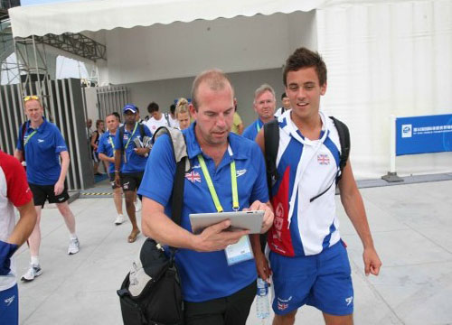 圖:外國(guó)運(yùn)動(dòng)員邊走邊使用天翼Wi-Fi上網(wǎng)