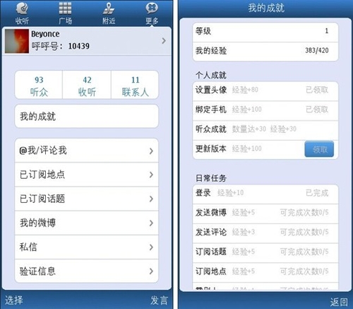 語音微博1.6 for Symbian新加入的私信和經(jīng)驗系統(tǒng)的加入使得用戶間信息的交流更緊密、分享更便捷。從此,千里傳音不是夢。