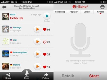 Echo+是一款語音分享應(yīng)用,你可以錄制打呼嚕的聲音、磨牙的聲音、又或者是打嗝的等聲音,然后上傳到Echo+,讓全世界的人民模仿你的聲音并給予你“回音”。