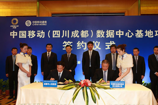 2012年2月22日,中國移動(四川成都)數據中心基地項目在四川成都正式簽約啟動。成都市政府葛紅林市長、劉超常委、白剛副市長與中國移動通信集團公司魯向東副總裁、中國移動四川公司簡勤總經理等出席簽約儀式,成都市政府與中國移動四川公司代表雙方簽署合作協議。