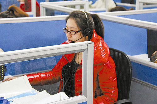 趙曉薇(化名)是拉手網(wǎng)北京客服部的一名工作人員,每天早上8:30,她會(huì)準(zhǔn)時(shí)戴上耳麥,開始一天忙碌的工作。“特忙,電話多的時(shí)候,一天得有300個(gè)來(lái)電!睍赞笔且粋(gè)語(yǔ)氣平和,聲音甜美,笑容溫和的女孩子。正說(shuō)著,她就趕緊接通了正在鈴鈴作響的電話,開始熱情、耐心地為用戶釋疑解困。