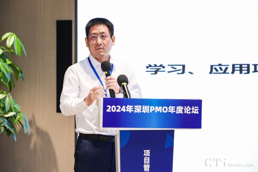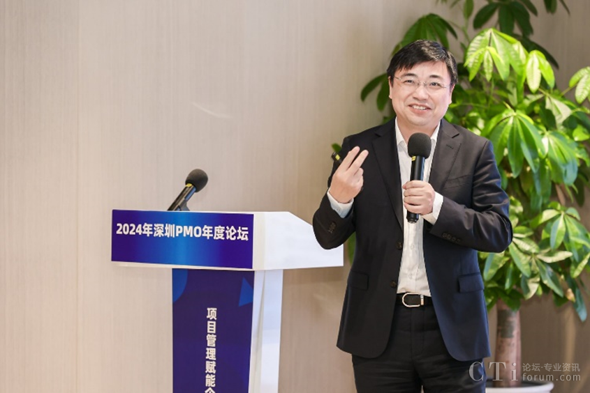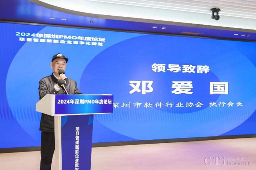 深圳市軟件行業(yè)協(xié)會(huì)執(zhí)行會(huì)長(zhǎng)鄧愛(ài)國(guó)發(fā)表了熱情洋溢的致辭。他強(qiáng)調(diào)了PMO在數(shù)字化轉(zhuǎn)型中的關(guān)鍵作用,并表達(dá)了對(duì)與會(huì)者們的熱烈歡迎和對(duì)論壇的殷切期望。他表示,PMO是項(xiàng)目管理中的重要角色,承擔(dān)著承上啟下的作用,對(duì)于企業(yè)數(shù)字化轉(zhuǎn)型的成功至關(guān)重要。