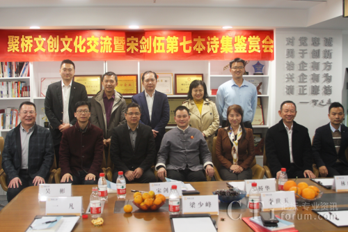 12月28日,聚橋文創(chuàng)文化交流暨宋劍伍第七本詩集鑒賞會在廣州天河召開,本次活動為首屆廣東中華優(yōu)秀傳統(tǒng)文化節(jié)系列活動之一,由廣東省傳統(tǒng)文化促進會、廣州聚橋文創(chuàng)、廣州市愛國為民文化信息傳播有限公司聯(lián)合主辦。廣東省文聯(lián)副秘書長、省文藝評論家協(xié)會專職副主席梁少鋒,廣東省傳統(tǒng)文化促進會會長李世玉,深圳城投集團執(zhí)行總裁安菲佳,廣東省傳統(tǒng)文化促進會林啟明、吳彬、一凡、徐波博士,聚橋文創(chuàng)總經(jīng)理、廣東省傳統(tǒng)文化促進會常務(wù)理事鄒橋華,青麥源集團董事長王錫光,商業(yè)戰(zhàn)略分析師、詩人宋劍伍,廣東金咨貓總經(jīng)理陳錫文等參加本次活動。正皓集團董事長潘堅發(fā)來活動祝賀信,并表示集團將在2024年和廣東省傳統(tǒng)文化促進會及詩人宋劍伍在品牌文化上有更深度的合作。
