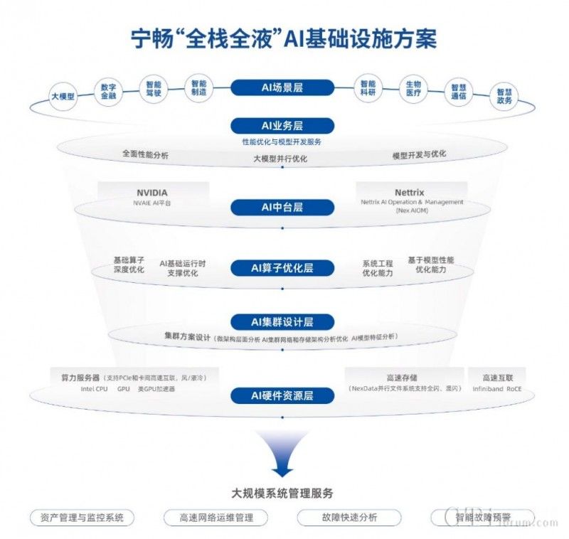 從實際應(yīng)用場景來看,寧暢“全棧全液”AI基礎(chǔ)設(shè)施方案可支持大模型落地所需的計算、存儲、網(wǎng)絡(luò)、建設(shè)、管理、應(yīng)用及液冷等全方位需求,能夠為智算中心的構(gòu)建、以及大模型落地過程中面臨的問題,提供強(qiáng)有力的支持,打造企業(yè)/行業(yè)級智算中心標(biāo)準(zhǔn)方案。
