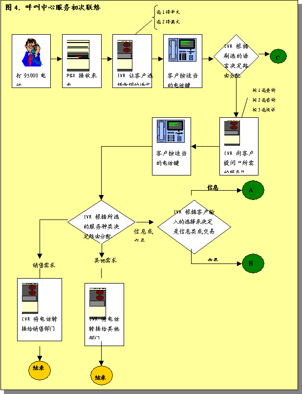 圖4詳細(xì)說明了呼叫中心服務(wù)初次處理呼叫的過程。根據(jù)圖標(biāo)的內(nèi)容,將立即撥號(hào)呼叫者: