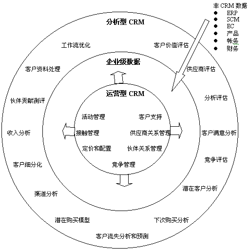 能提供上述問題和其他企業(yè)問題的客戶信息,就能夠?qū)蛻舴⻊、銷售技巧和隨后的促銷戰(zhàn)略作出關鍵決策。通過對“運營型”CRM數(shù)據(jù)與來自于全公司的信息進行集成,公司便能夠開始執(zhí)行分析型CRM;并且執(zhí)行后,可以作出真正的“以客戶為中心”的企業(yè)決策。