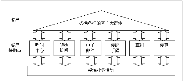運營型CRM,也著稱為“前臺”CRM,與客戶直接發(fā)生接觸。我們將這些交互作用看成客戶“接觸點”。接觸點可以是“入境”接觸,例如,打給公司客戶熱線的電話;也可以是“出境”接觸,例如,一對一銷售電話或e-mail促銷。如今市場上自稱為CRM供應(yīng)商的產(chǎn)品主要歸入運營類。圖1解釋了不同層次的運營型CRM。