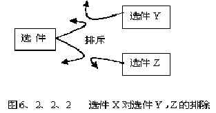 選件的排除關系是指在產(chǎn)品配置時,選擇了一件就不能選擇另外一件或多件。比如在旅行社在組團時規(guī)定,如選擇了酒店A,就無法選擇組件交通工具中的選件火車,因為酒店A離火車站太遠。圖6、2、2、2說明了這種關系。