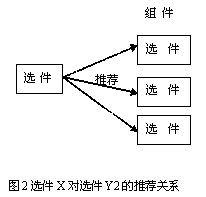 當客戶選擇某個選件時,系統(tǒng)自動提示推薦另一選件,這種關系稱為選件的推薦關系。比如,在配置手機產(chǎn)品時,選擇了某電話選件,則推薦使用特定充電器型號選件,雖然其他類似的選件也可以適用。如圖2所示,雖然選件X可以與組件Y內(nèi)的選件Y1,Y2,Y3搭配,但推薦使用Y2。