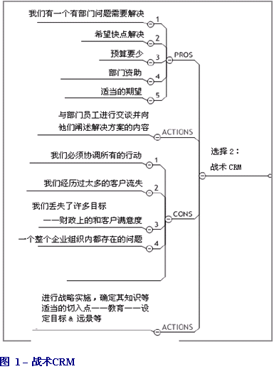 換言之,它是一種戰(zhàn)術(shù)性的還是戰(zhàn)略性的需求?許多企業(yè)喜歡在一段時(shí)間內(nèi)解決某個(gè)問(wèn)題或困難。然而這種戰(zhàn)術(shù)性的方式很難為企業(yè)帶來(lái)競(jìng)爭(zhēng)上的優(yōu)勢(shì),盡管它有可能會(huì)改善部門(mén)的效率。究竟我們要在CRM之路上走多遠(yuǎn)?想要知道答案的話可以看一下圖1。從頭開(kāi)始,問(wèn)問(wèn)自己:它是一個(gè)具有明確定義和目標(biāo)范圍的部門(mén)需求嗎?如果真是這樣,那么預(yù)算也應(yīng)該相當(dāng)有限,因?yàn)槠渌鼧I(yè)務(wù)部門(mén)決不會(huì)遷就。然而你很可能會(huì)發(fā)現(xiàn)你的部門(mén)問(wèn)題就是企業(yè)與客戶及市場(chǎng)脫離的征兆。如果情況的確如此,那么你就要好好地努力深化CRM并取得更為廣泛的支持——尤其是CEO,因?yàn)槟阌性S多關(guān)于客戶選擇的問(wèn)題要有賴于他。