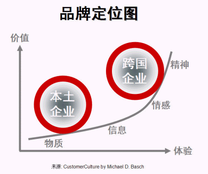客戶體驗是客戶關系管理的重要組成部分。根據過去數年評選中國最佳CRM實施企業(yè)所作的分析,本土與外資企業(yè)在企業(yè)體檢中各項主要評分中有較大差距,其中之一是客戶體驗(-7.1分,見圖一、本土與跨國企業(yè)之差距)。本土企業(yè)若只提供低層次的客戶體驗,只為客戶帶來低價值,也只能打價格戰(zhàn)、做代工,很難做大做強打通全球市場。做好品牌,其實再深入一點說就是要做好客戶體驗,價值(價格)才會上去(見圖二、品牌定位)。