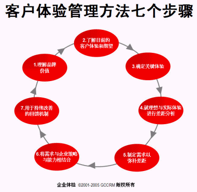 客戶體驗管理方法分為七個主要步驟,F通過一零售業(yè)例子闡述其具體應用(見圖七、客戶體驗管理方法七個步驟)。