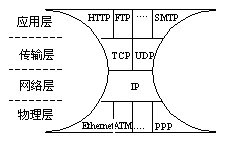 。。IP協(xié)議在多樣的物理介質(zhì)與多樣的應(yīng)用需求之間建立了簡(jiǎn)單而統(tǒng)一的映射方法。這樣形成的融合網(wǎng)絡(luò)具有沙漏型的體系結(jié)構(gòu),如圖2所示,可以靈活地進(jìn)行業(yè)務(wù)的配置和物理網(wǎng)絡(luò)的升級(jí)。由于IP技術(shù)在安全性和用戶管理方面的缺陷在三網(wǎng)融合過(guò)程當(dāng)中還不構(gòu)成大的障礙,因此基于IP進(jìn)行三網(wǎng)融合幾乎是必然的選擇。