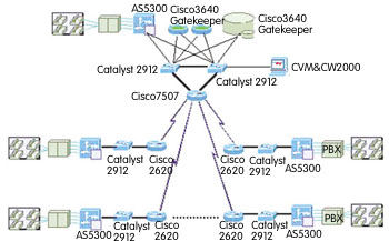 這是一個大型的企業(yè)IP電話網(wǎng), 網(wǎng)點眾多,結(jié)構(gòu)復(fù)雜,對網(wǎng)絡(luò)的安全性要求非常高,因此在技術(shù)選型時進(jìn)行了充分認(rèn)證。
