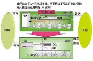 對于全部采用IP PBX的企業(yè),在完成數(shù)據(jù)網(wǎng)布線的同時(shí),也等于完成了電話網(wǎng)的布線,可大大節(jié)省布線成本,從而解決了繁雜的電纜問題(圖一)。