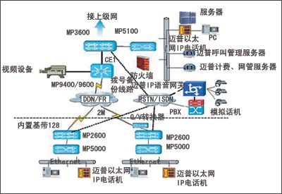 該方案中,整個(gè)網(wǎng)絡(luò)構(gòu)建基本上在原有網(wǎng)絡(luò)基礎(chǔ)之上進(jìn)行搭建,沒有影響到原有網(wǎng)絡(luò)的重建,同時(shí)還充分利用了原有的路由IP功能,優(yōu)化了網(wǎng)絡(luò)結(jié)構(gòu)。邁普IP語音設(shè)備完全遵循H.323標(biāo)準(zhǔn)設(shè)計(jì),可以完全同其它標(biāo)準(zhǔn)設(shè)備廠商兼容,如Cisco以太網(wǎng)電話機(jī)、路由器IP語音模塊等。為了充分保證用戶投資,設(shè)計(jì)時(shí)充分考慮前向兼容已有產(chǎn)品(如路由器IP語音模塊),后向兼容未來產(chǎn)品(如邁普高密度語音網(wǎng)關(guān)、邁普以太網(wǎng)電話機(jī)等)。該方案有高效的成本控制能力,MyPower