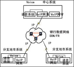 語音聯(lián)網(wǎng)可以由多個地市系統(tǒng)組成,同時可以將Voice Over IP聯(lián)網(wǎng)的關守設立在中心系統(tǒng)或其中的某一個地市,地市之間的語音聯(lián)網(wǎng)的數(shù)據(jù)通道可以利用銀行現(xiàn)有的數(shù)據(jù)網(wǎng)絡來支持,并根據(jù)需要分配帶寬。