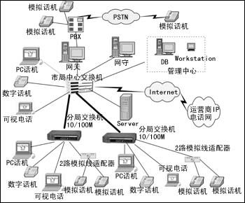 當(dāng)中國電信、中國聯(lián)通等運(yùn)營商的IP電話網(wǎng)對外開放時(shí),該網(wǎng)上的數(shù)字電話可通過網(wǎng)守認(rèn)證直接連入各運(yùn)營商的IP電話網(wǎng),已有的模擬電話通過與市局中心的程控交換機(jī)PBX相連的IP電話網(wǎng)關(guān)進(jìn)入各運(yùn)營商的IP電話網(wǎng),撥打長途電話時(shí)只需支付IP電話結(jié)算費(fèi)(比現(xiàn)在市面上的IP電話費(fèi)便宜很多)。在市局中心設(shè)有網(wǎng)守和管理中心,控制和接續(xù)各話音呼叫,并對系統(tǒng)進(jìn)行管理。