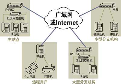 純IP電話就是采用專用的IP電話機(jī)以及語音網(wǎng)關(guān),通過企業(yè)內(nèi)部網(wǎng)絡(luò)(LAN)以及外部互聯(lián)網(wǎng)共同構(gòu)建的應(yīng)用系統(tǒng)。LAN是一個(gè)前提,否則談?wù)摷僆P電話就沒有什么意義,其中的IP電話機(jī)不是連接在電信局所提供的電話插座上,而是像PC機(jī)、筆記本電腦那樣直接連接到LAN的接口。也就是說,應(yīng)用完全構(gòu)建在數(shù)據(jù)網(wǎng)絡(luò)的基礎(chǔ)之上。