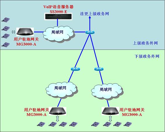 在電子政務(wù)網(wǎng)建設(shè)完成后,政府各級(jí)部門可以在其上建設(shè)自己的VoIP系統(tǒng),以實(shí)現(xiàn)轄區(qū)范圍內(nèi)“虛擬電話專網(wǎng)”的效果。在這個(gè)電話專網(wǎng)內(nèi),所有內(nèi)部電話都有自己設(shè)置的小號(hào),他們之間通話都將免費(fèi),而不管這些電話間物理距離是多少。