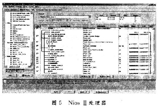 首先使用SOPC Builder系統(tǒng)工具構(gòu)建了一個NiosCPU作為整個系統(tǒng)的處理器核,它的Avalon總線對其他接口及控制器進行指令和數(shù)據(jù)傳輸,包括:由內(nèi)部定時器控制的Avalon總線;為Nios