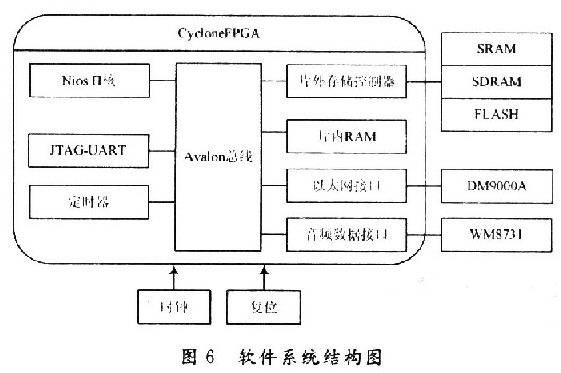 SOPC系統(tǒng)的平臺包括:Altera的Nios處理器、Aval—on總線,片內(nèi)外存儲器以及外設模塊等。利用SOPCBuilder,用戶可以很方便地將處理器、存儲器和其他外設模塊連接起來,形成一個完整的系統(tǒng)。其中,SOPC