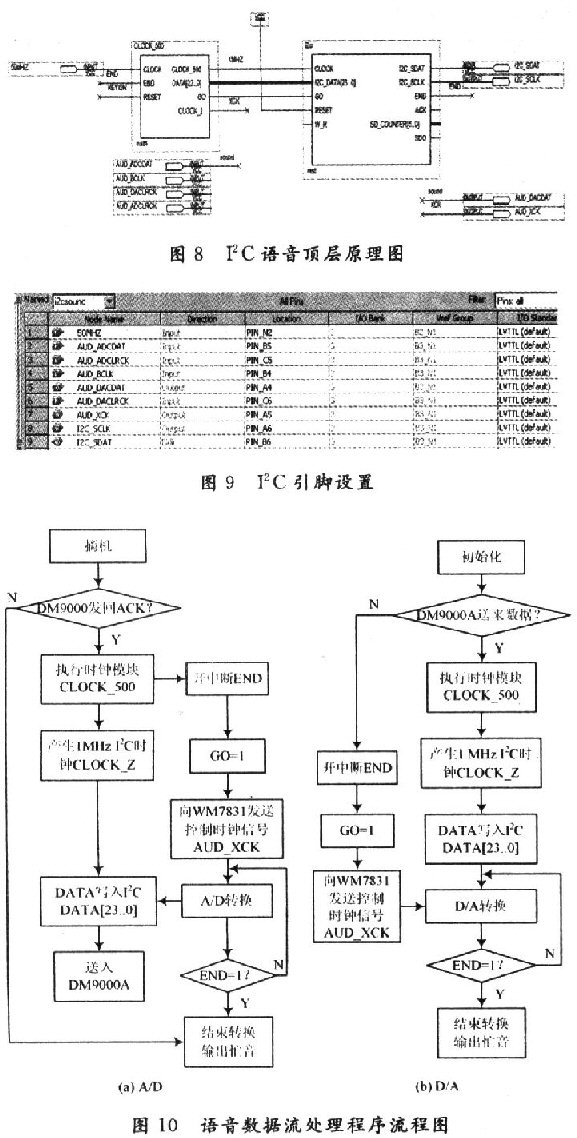 由于語音編解碼器的處理延時是影響VoIP話音質(zhì)量的因素之一,為了保證語音編解碼的實時性,軟件系統(tǒng)在控制WM8731編解碼器的編解碼同時,加入了I2C語音模塊,以實現(xiàn)語音數(shù)據(jù)的實時處理。它采用自頂向下設計方法利用QuartusⅡ進行設計。