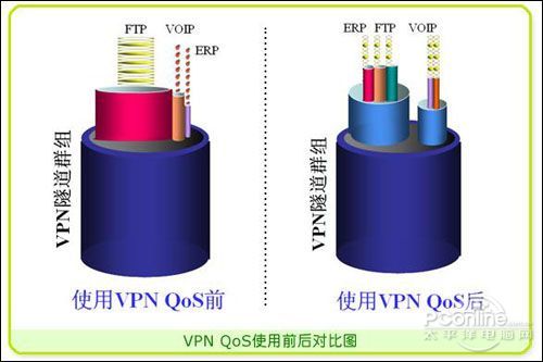 一般情況下VPN線路帶寬所表現(xiàn)出來的時(shí)大時(shí)小、斷斷續(xù)續(xù)、甚至中斷等等不夠用或不穩(wěn)定的情況,在使用VPN QoS以后可得到根本的好轉(zhuǎn),它可以對(duì)VPN總體帶寬進(jìn)行大小分配,進(jìn)行優(yōu)先而穩(wěn)定的保證。有了足夠的VPN線路帶寬,才能快速的進(jìn)行VoIP、ERP等應(yīng)用。因此保證VPN整體帶寬是VPN應(yīng)用的基礎(chǔ)。