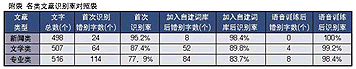 然后,我們又利用聲龍?zhí)赜械脑~匯生成器,讓聲龍自行辨別文章中的詞匯并自動(dòng)添加到自建詞庫(kù)中,并針對(duì)其中的一些英文單詞或縮寫對(duì)聲龍進(jìn)行語(yǔ)音識(shí)別訓(xùn)練,之后我們?cè)俅武浫胪黄獙I(yè)文章。結(jié)果非常令人滿意,從附表可以看出識(shí)別率有了明顯提高。最后,我們又錄入了另一篇相同領(lǐng)域的專業(yè)文章中的一段(512字)。首次錄入的錯(cuò)別字有46個(gè),識(shí)別正確率為91%。與第一篇文章相比,識(shí)別率有了明顯提高。