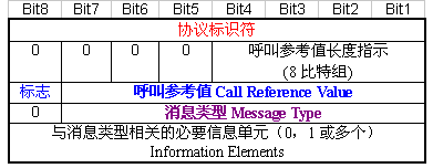其中的協(xié)議標(biāo)識符指示消息的參考協(xié)議類型,比如I.451消息的協(xié)議標(biāo)識符為"00001000";呼叫參考值用于指示消息所控制的B信道上哪一呼叫,該值由發(fā)起呼叫的一側(cè)進(jìn)行分配,且和某一特定呼叫相關(guān)的所有消息都附帶了這個值。