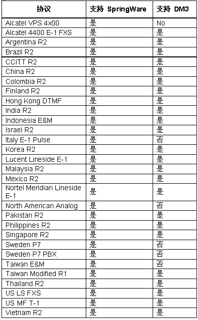 下面的協(xié)議是這個(gè)版本中的新協(xié)議。這些協(xié)議可以用在 DM3 和 SpringWare 板卡上, 除了 Alcatel