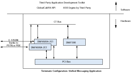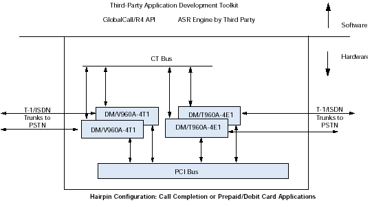 通過(guò)訪問(wèn)計(jì)算機(jī)電話(CT)工業(yè)標(biāo)準(zhǔn)的ECTF H.100/H.110 CT Bus,利用DM/V-A多功能資源系列板卡,應(yīng)用程序可以具備交換能力以及擴(kuò)展到其他技術(shù)的能力,諸如網(wǎng)絡(luò)接口(DM/T或者DM/N系列),ATM連接,SS7,以及IP電話。