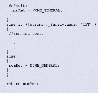 。。當(dāng)系統(tǒng)檢測(cè)到一個(gè)外圍設(shè)備板卡時(shí),建議您在該設(shè)備上執(zhí)行POST以保證硬件功能良好。系統(tǒng)版提供了POST工具,可以基于硬件類(lèi)型和它屬于的產(chǎn)品系列被單獨(dú)執(zhí)行。圖6例證了這個(gè)功能是如何完成的。代碼snippet是系統(tǒng)版應(yīng)用實(shí)例pfmanager的一部分。