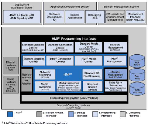 (HMP)軟件產(chǎn)品,用于在基于Dialogic構(gòu)架之上的普通服務(wù)器上進(jìn)行媒體處理任務(wù),而無(wú)需專門的硬件支持。使用該軟件提供的媒體服務(wù),能夠構(gòu)建出靈活的、可擴(kuò)充的、低成本的下一代IP媒體服務(wù)器。