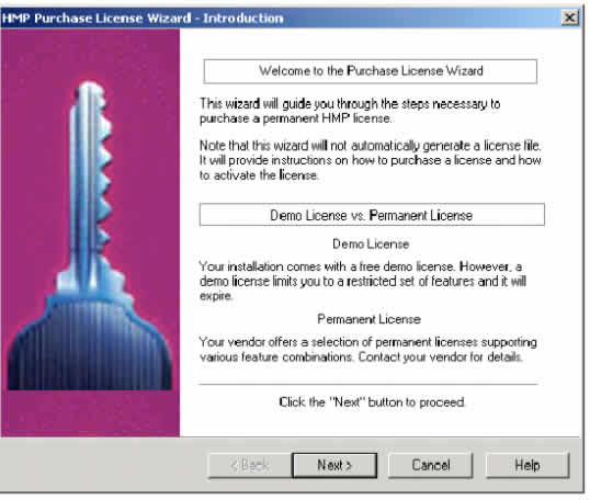 2. 在HMP許可證管理器窗口中(圖16),點(diǎn) How to Purchase License...按鈕。HMP購(gòu)買許可證導(dǎo)航將出現(xiàn)(圖17)。該向?qū)⒁徊讲街笇?dǎo)你購(gòu)買一個(gè)永久的HMP許可證。