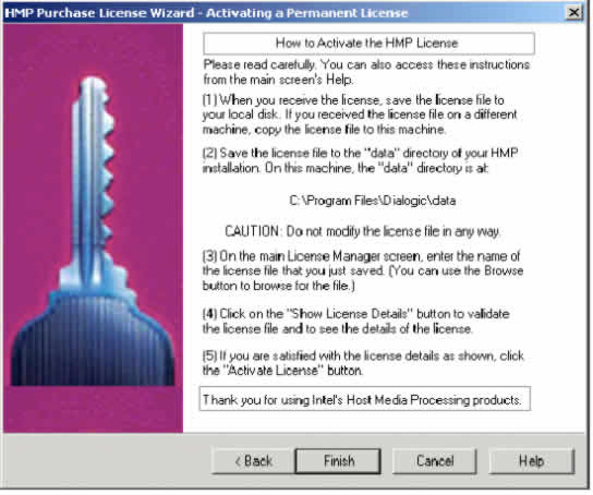 1. 從廠商處獲得許可證后,將許可證文件保存到HMP所在計(jì)算機(jī)上的%DLFWLPATH% 目錄中。這是HMP安裝的"數(shù)據(jù)"目錄。HMP購(gòu)買許可證向?qū)У牡谌齻(gè)界面將指明你機(jī)器上的路徑(例如圖19)。另一種找出%DLFWLPATH%
