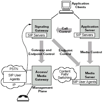 許多語音服務(wù)都是由媒體服務(wù)器提供的。例如,一個(gè)客戶給某個(gè)電子商務(wù)網(wǎng)站打電話會被接到一個(gè)自動語音應(yīng)答(IVR)上或者自動總機(jī)上。這些應(yīng)用使用了語音,語音識別和音頻等功能,都是運(yùn)行在媒體服務(wù)器上的。在下一代網(wǎng)絡(luò)的實(shí)現(xiàn)中,媒體服務(wù)器就象是另一個(gè)電話(或者說,一個(gè)SIP的終端)。因此,他們可以享受和用戶一樣的SIP的優(yōu)點(diǎn)。