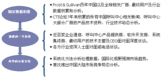 Frost & Sullivan 和 CTI論壇(m.apkmint.com)共同組成的調(diào)研小組,在查閱了大量資料的基礎(chǔ)之上,以企業(yè)通信及呼叫中心的設(shè)備應(yīng)用、投資計(jì)劃以及相關(guān)廠商的市場(chǎng)表現(xiàn)為出發(fā)點(diǎn),通過對(duì)企業(yè)通信及呼叫中心重要應(yīng)用企業(yè)、在市場(chǎng)占主導(dǎo)地位的二十多家設(shè)備廠商、二十多家軟件開發(fā)商、十幾家系統(tǒng)集成商、數(shù)家外包運(yùn)營(yíng)商的深度訪談,參閱內(nèi)部相關(guān)報(bào)告及數(shù)據(jù)庫,對(duì)數(shù)據(jù)的來源和數(shù)據(jù)的準(zhǔn)確性進(jìn)行了詳細(xì)核對(duì)與論證;憑借參與調(diào)研人員的多年從業(yè)經(jīng)