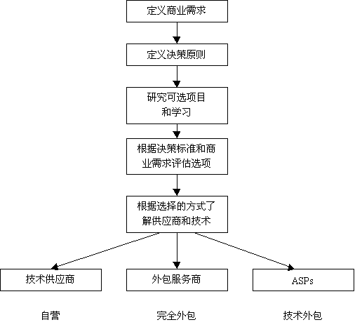 在確定規(guī)模和電子商務(wù)的影響之前,應(yīng)該先花費(fèi)些時間分析一下環(huán)境條件。圖2提供了一個框架結(jié)構(gòu),可用于確定實現(xiàn)電子商務(wù)支持最好的方式。記住,這只是確定你希望采取的步驟的第一步,下一步將選擇一個銷售商或供應(yīng)商。